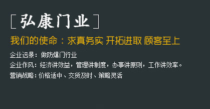 河北弘康門業有限公司     河北弘康門業有限公司是一家生產防爆門窗、泄爆門窗、密閉門窗、防火門窗、監獄門、隔音門、變壓器門,隧道抗風壓防火門,隧道防護門,3小時防火門窗,防火玻璃門,雙向開啟防火門等特種門窗的生產廠家。河北弘康門業有限公司一直致力于防爆技術、新產品的研究開發工作。